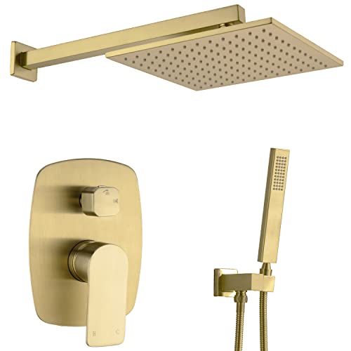 🔥 Hot Deals TRUSTMI Shower Faucet System Brass 10 Inch Bathroom Rainfall Shower with Hand Held Shower Head, Wall Mount Brushed Gold Shower Set, Contain Rough-in Shower Valve Body and Trim
